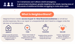 *NeighborShare is a nonprofit platform that enables everyday people to support a neighbor in need quickly and transparently. NeighborShare provides access to timely financial assistance that can prevent a family from spiraling deeper into hardship.