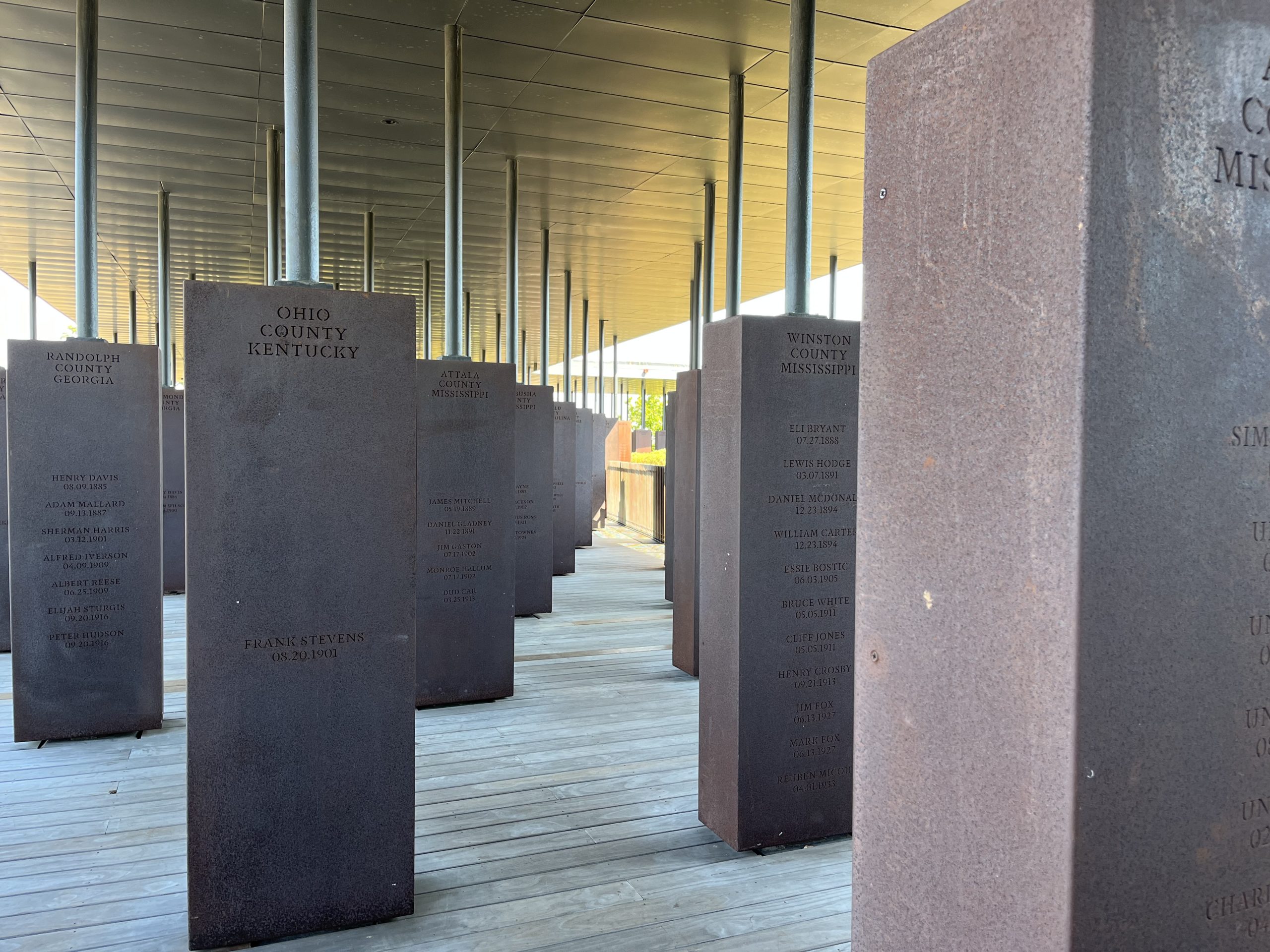 Heather: The Memorial for Peace and Justice is so powerful and overwhelming. The memorial features the names of 4,400 people who were known to be lynched in the United States. In speaking with one of the staff people, I learned that since the memorial was built, the research team at the Equal Justice Initiative has identified documentation of another 3,300 individuals that have been lynched. We want to think that this type of violence was rare, but in fact it was much more common place.