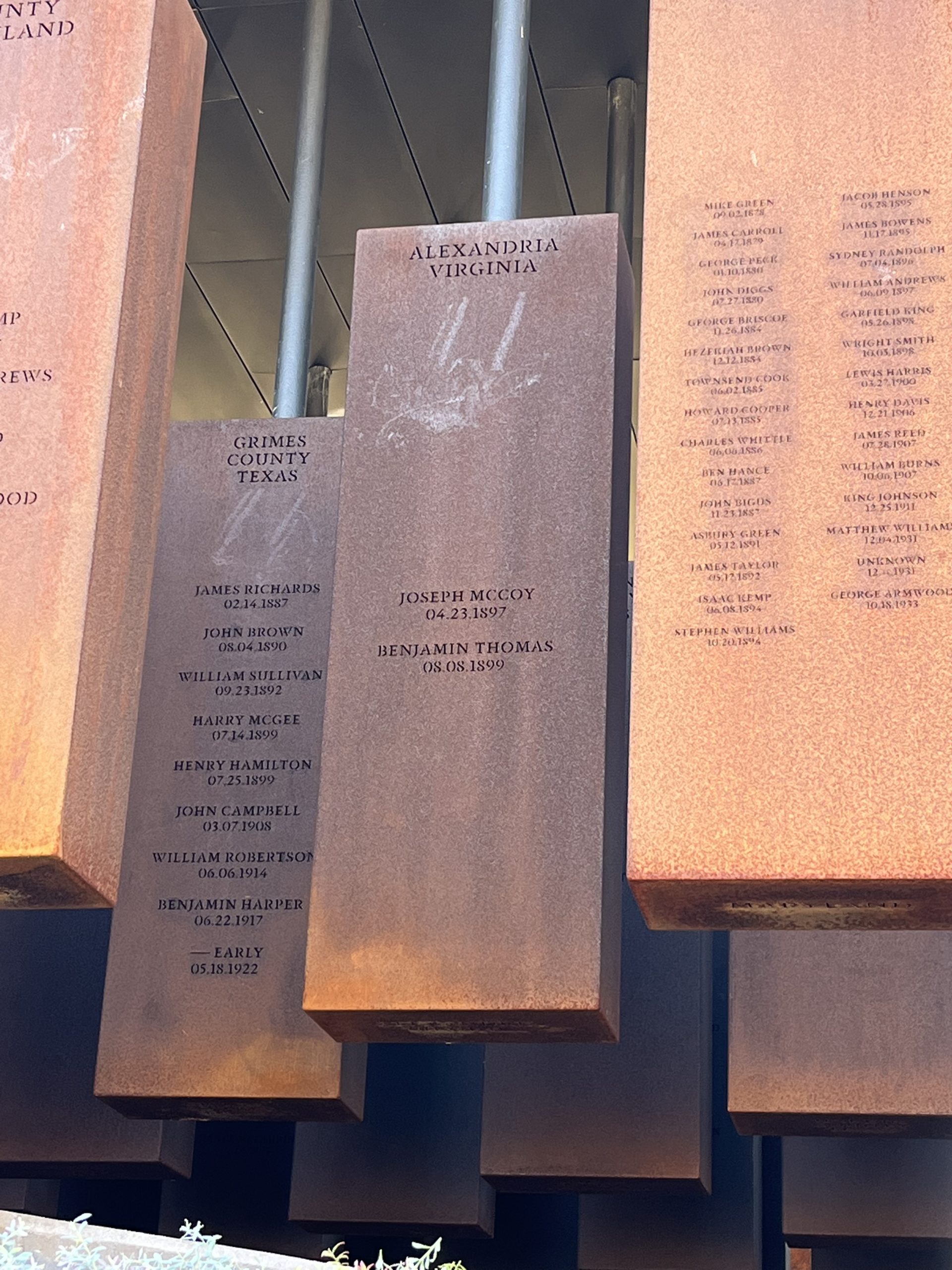 From October 6th through 10th, ACT team members Heather Peeler and Sally Gardner (as well as other members of the ACT community) were able to participate in the The Alexandria Community Remembrance Project (ACRP) pilgrimage to the Equal Justice Initiative’s National Memorial for Peace and Justice and Legacy Museum. This trip included a series of meaningful experiences, including crossing the Edmund Pettus Bridge and delivering soil collected from Alexandria in a symbolic gesture to reflect the lives of Alexandria’s two known lynching victims – Joseph McCoy and Benjamin Thomas.